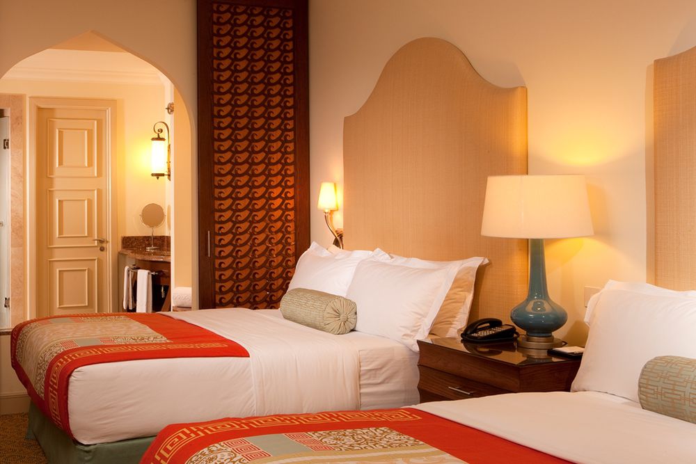 Each of the 1,539 rooms features a lovely balcony overlooking the Persian Gulf or The Palm Island. They spread over the two Royal Towers wings, which are easily accessible since a bridge connects them.