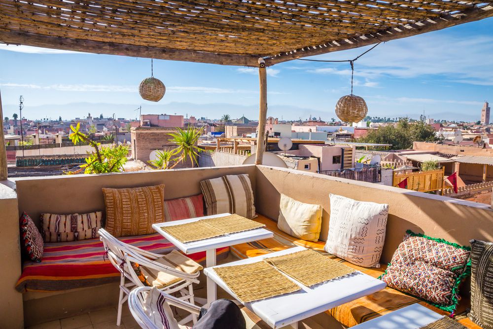 Traditional hospitality - tea time on the roof terrace of a riad.