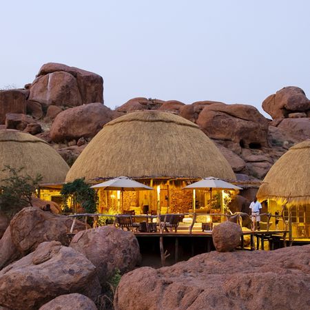In the heat, dust and breathtaking landscapes of Damaraland is the retreat of Mowani Mountain Camp. Surrounded by massive ochre boulders, this camp blends into the landscape, becoming one with the history of this prehistoric land. Wildlife roams along the ancient dry riverbeds in the evening sun, reminding you how precious untouched nature is.