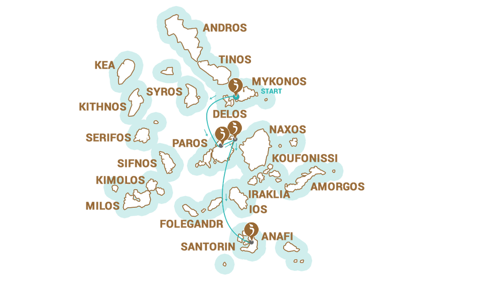 Discover the unique islands of the Cyclades Mykonos, Paros, and Santorini in two magical weeks.