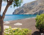 Kamari Beach is a popular spot in Santorini because of its fine black sands.