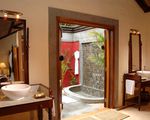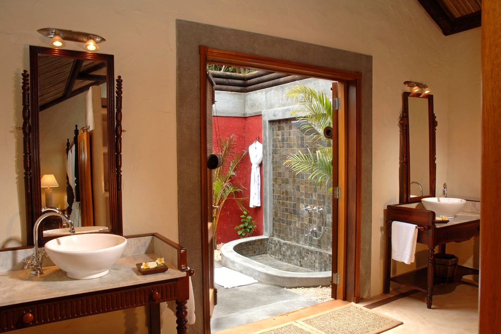 The semi-open bathroom with outdoor shower ensures a good start to the day.