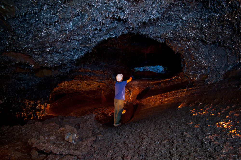 Hiking through an underground lava tunnel