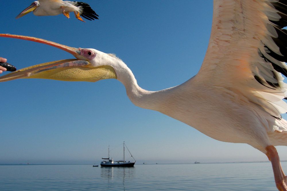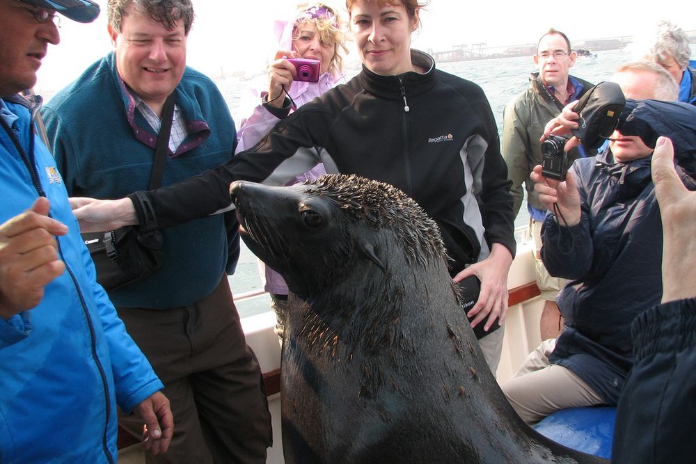 Your guide will tell you all about the marine life’s interesting facts as the stunning landscapes surround you. Enjoy the morning breeze on the sea and discover the sea creatures up close and personal. A highlight of the tour will be when the seals jump up on the boat! When you arrive at Walvis Bay, relish the beautiful combination of ocean and dunes. The boat will take you past the harbour to Guano Island. From here, you will continue your journey to Pelican Point, where a large colony of fur seals will entertain you.