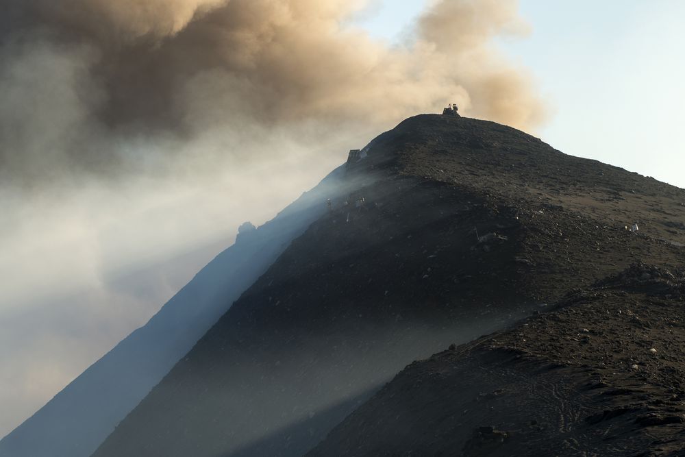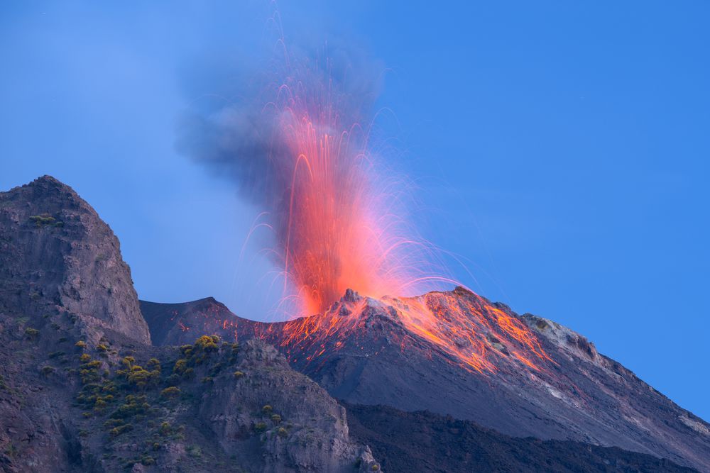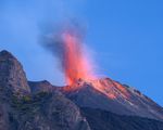 Clouds of smoke rose as ash and cooled lava flows color the rough mountain slopes black. The Italian Lipari island of Stromboli and its constantly active eponymous volcano attracts adventurous and nature-loving people to the rugged landscape.