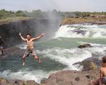 During a unique adventure to Victoria Falls, you will have the opportunity to swim in the Devil's Pool! Cautiously dip your feet in the refreshing water as you muster up the courage to swim in a pool at the precipice of the falls. Visitors can swim here because it's a deep natural pool created by thousands of years of erosion. What is truly unique about the Devil' ls Pool is that there's a rock ledge on the lip of the Falls, where the water is only a few centimeters deep. This natural barrier allows you to jump into the deep pool but not get swept over the edge. Your jaw will drop when you lie at the edge of the Devil's Pool and look right into the 338 feet gorge of the Falls.