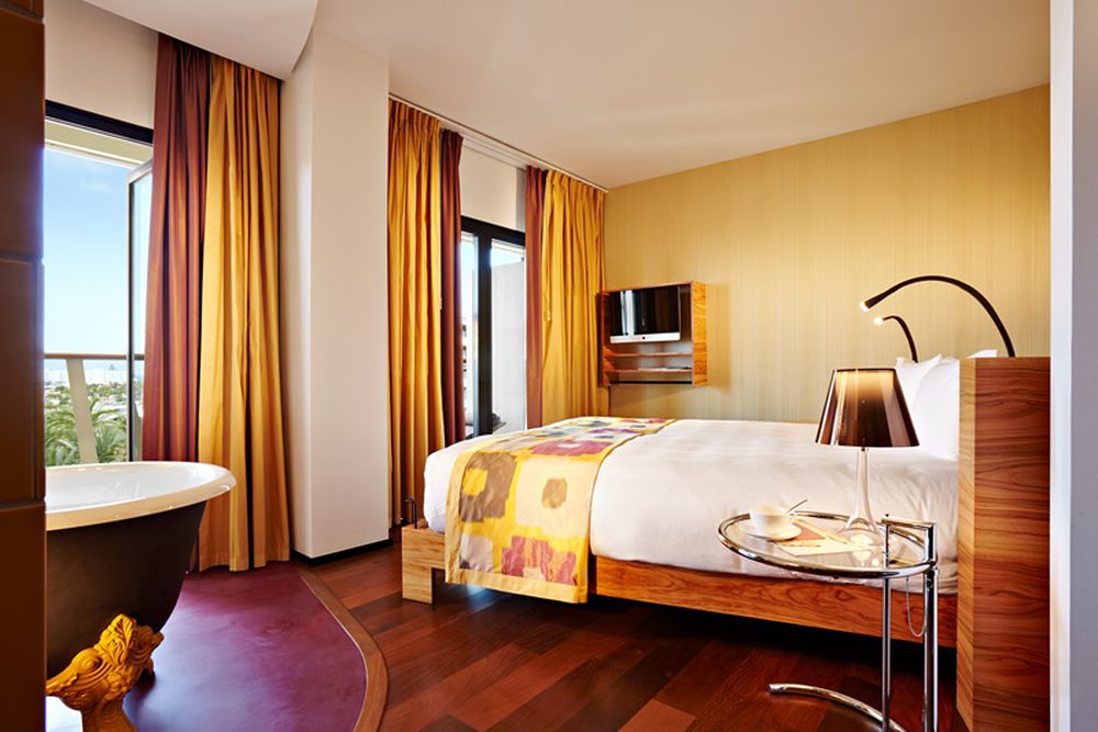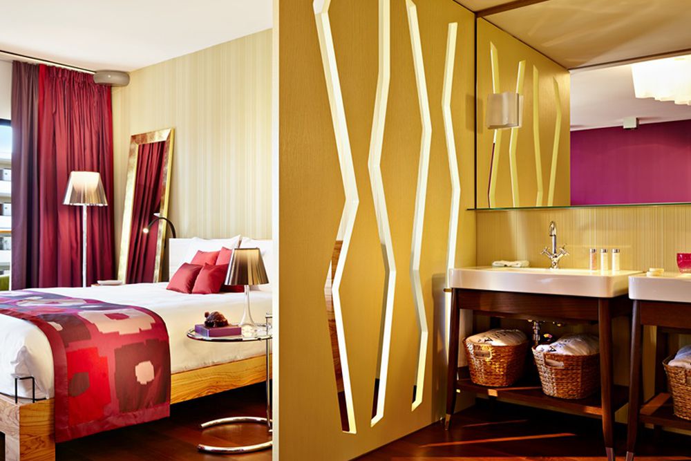 The hotel has a total of 67 rooms and suites, all furnished in modern style and equipped with different color schemes. Surround yourself with colors of gold, purple and orange for the perfect design ambience in all the guest rooms. In addition to high-quality materials, all rooms have an iPod docking station, free Wi-Fi, a safe, air conditioning, a telephone and balcony.