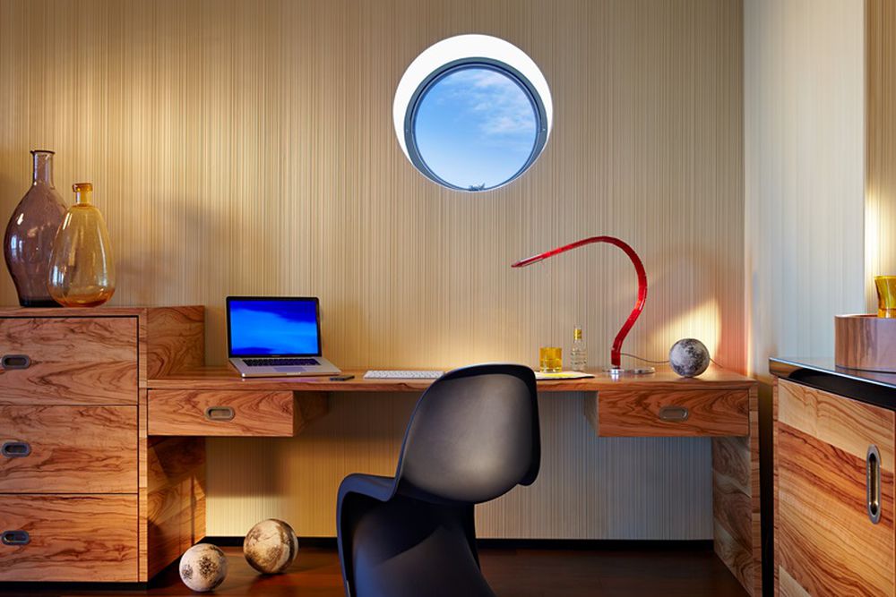 Sky Suite (105 m²) — With two fantastic terraces, floor-to-ceiling windows and a spacious bedroom with panoramic views, this suite will more than impress. Amplify your experience on the private terrace or take a break in the freestanding bathtub in the bedroom. A fully-equipped wet bar with an espresso machine and filled fridge makes it easy to entertain or enjoy a nice drink in the living room.