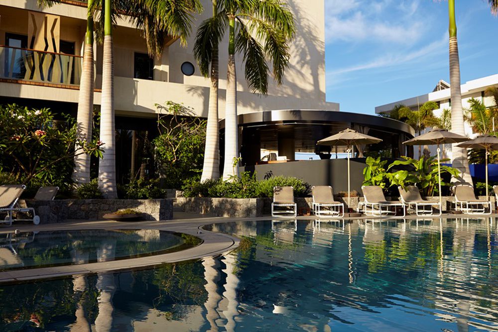 Deluxe Double Room (28 m²) — These luxurious rooms have the option between garden or sea views from your furnished balcony. The floor to ceiling windows bring the tropical scene inside and integrate it perfectly with your exclusive room.