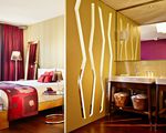 The only 67 rooms and suites in total are modernly equipped and furnished according to different colour concepts. The colours gold, purple, and orange set the ambience. In addition to high-quality materials, all rooms have an iPod docking station, free Wi-Fi access, safe, air conditioning, telephone, and balcony.