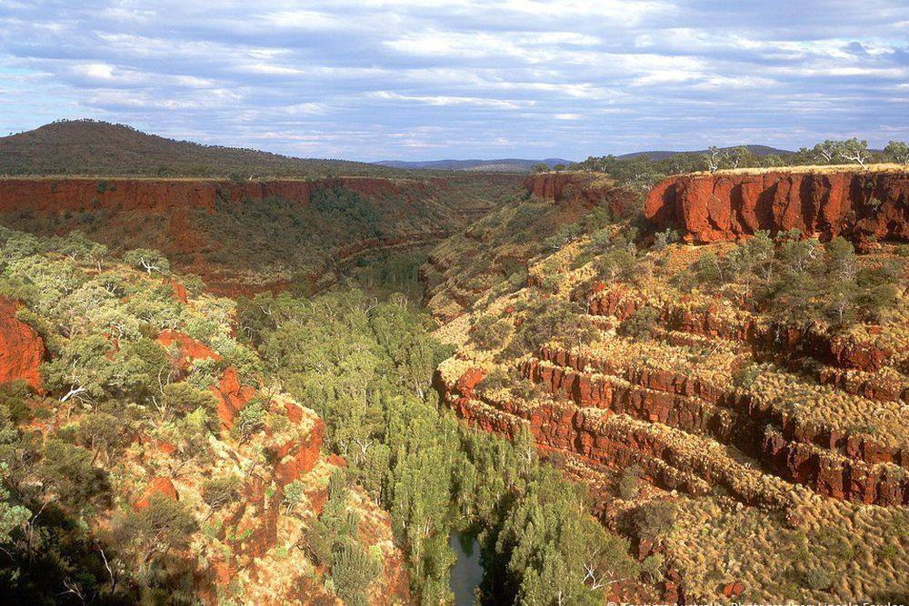 This morning you'll need to get up bright and early, for today you'll be driving along the North West Coast Highway no. 1 inland, past the Pilabara region and its large livestock landscapes. The rugged and ancient backdrop of the Karijini National Park is one of the most spectacular highlights of western Australia. Characteristic of the park are the reddish colors of the landscape, the deep gorges and waterfalls. A stay here is an absolute must! The trails here offer something for everyone - whether you are a leisure hiker or an adventurer. The paths lead through the canyons to waterfalls, at the end of which you can cool off. The southern part of the park is inaccessible, but in the north you can discover numerous canyons with green pools. The most famous waterfall is the Fortsecue Falls in the Dales Gorge. At its end are the Circular Pool and the Fern Pool, which invite you to a cool bath. At the center of the reserve is the Visitor Center, where you can get information. At the Oxer's lookout you will have a wonderful view of the crossroads of the four Gorges: Red Gorge, Weano Gorge, Joffre Gorge and Hancock Gorge. Distance: 625 km / 11 hours. 2 nights at Karijini Eco Retreat * * * with Breakfast at the Deluxe Eco Tent, Karijini National Park, Australia