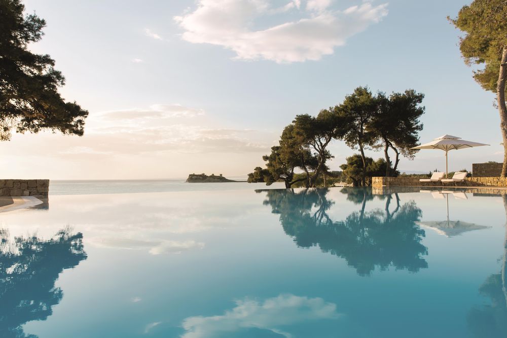 Enjoy views of the azure sea while going for a dip in the outdoor pool.
