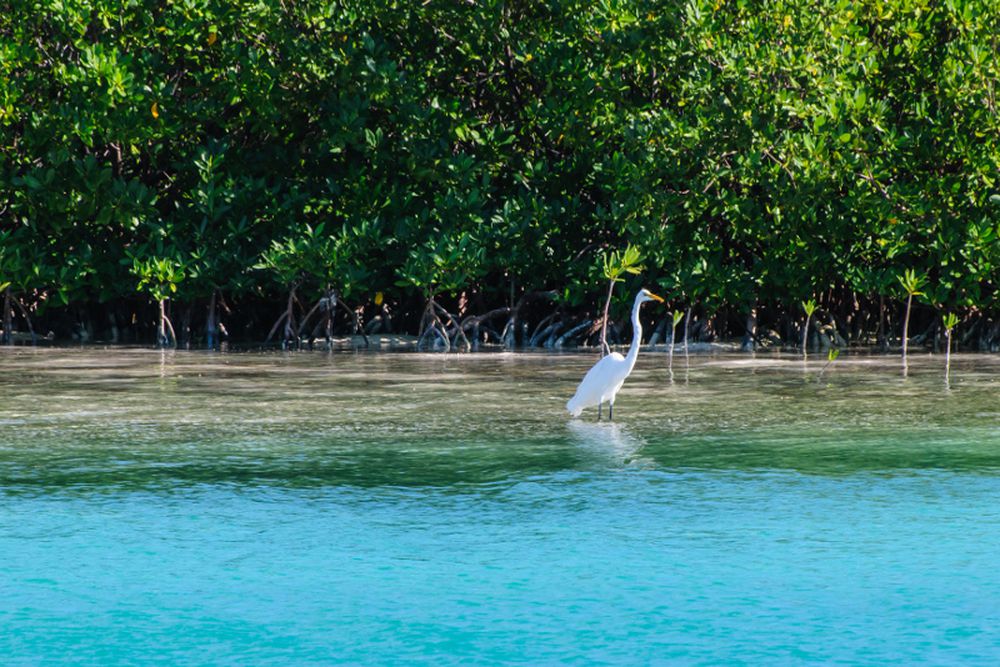 In the afternoon, sail to the Quinto Canal, where you can kayak to explore the mangroves, swim in the natural swimming pool, and stroll around the island.