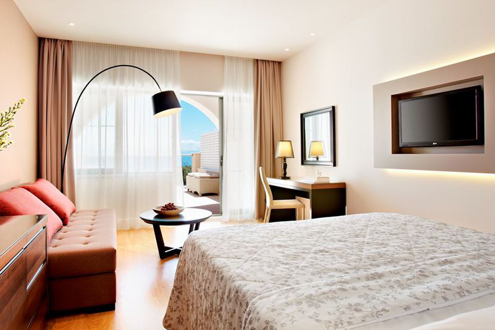 Superior Room Sea View (30 sqm)- Exuding an aura of calm, these rooms are fitted with a double or twin bed, one comfortable sofa bed and a spacious bathroom.