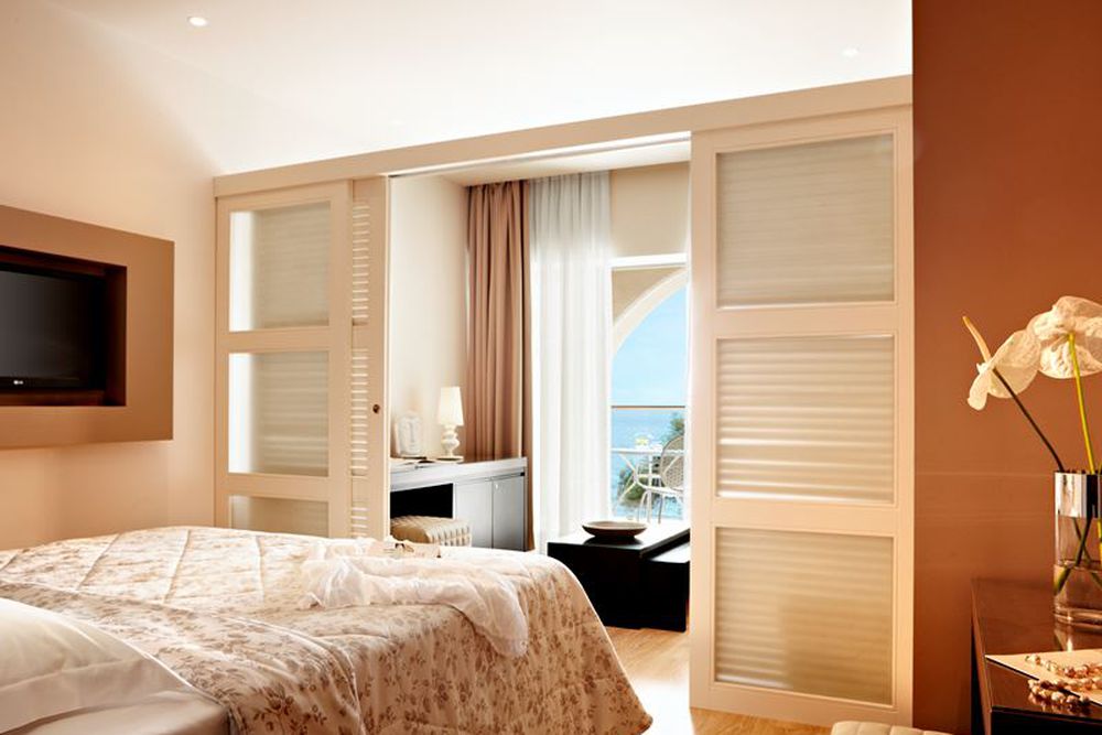 Superior Family Room (40 sqm)- These rooms welcome families to relax in pure comfort whilst gazing at the sea. The spacious bedroom and sitting area with the two single sofa beds separated by sliding doors give families the opportunity to enjoy some time on their own while the nice terrace or balcony invites them to relax in view of the endless horizon.