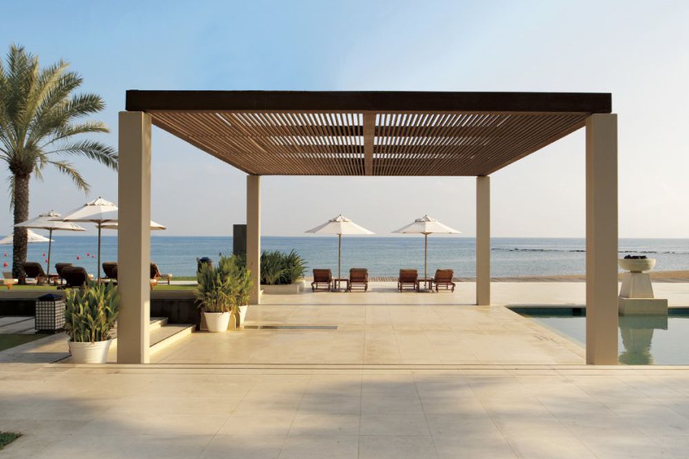 The beachfront restaurant, Beach Pavillion, is located on the coast of the Gulf of Oman and serves freshly caught fish and seafood.