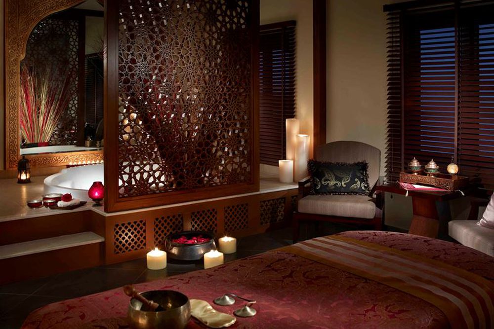 The stylish spa area includes 12 treatment rooms, a sauna, a steam room, and a hot tub.