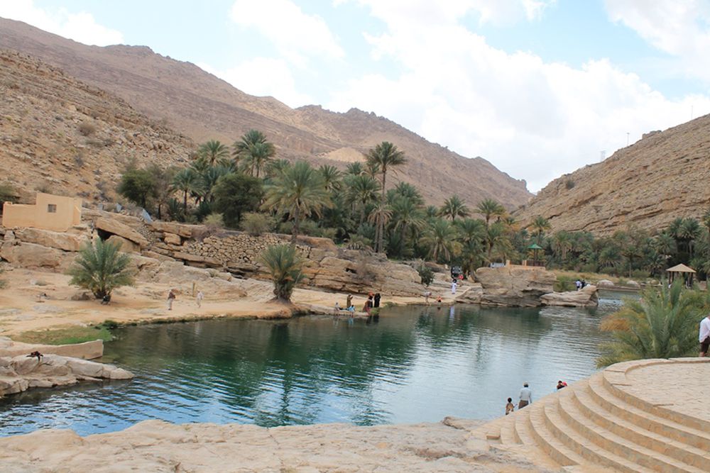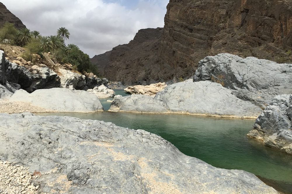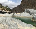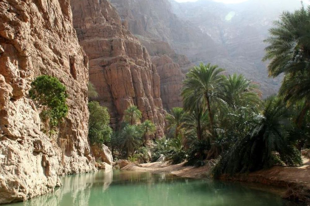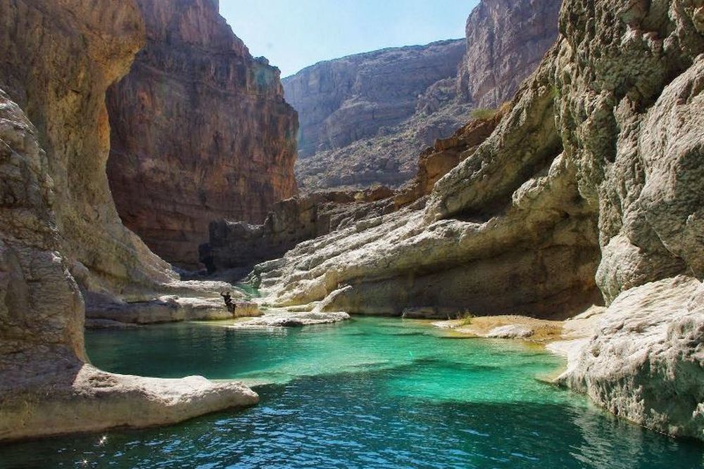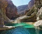 The Wadi Bani Awf with its turquoise water will lure you into the cool water.