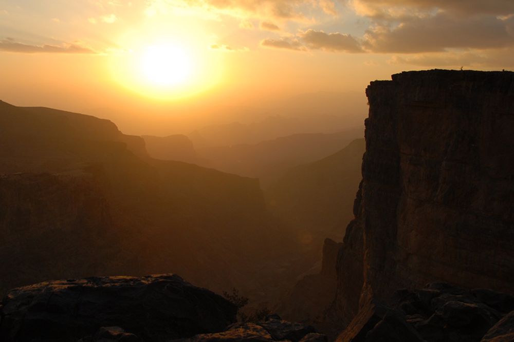 When you wake up the next morning, let the warm sand trickle between your toes and fingers one last time before you leave the desert again. From here, you will gradually make your way to the mountains and your camp for the night. However, there are many interesting stops waiting for you along the way that will once again show you the diversity of this country. Nizwa was the Imam's headquarters until 1783 and is still today, and is known in Oman as a spiritual center. Stroll through the traditional souk, a market known for its valuable silverware and Bahla pottery. The city's fortress sits slightly above and offers breathtaking views of the city and surrounding mountains. Continue on to Jebel Sham, the highest mountain in Oman at 3,009 meters, where the 17th century Jabrin Castle overlooks visitors. Just before you get to the oasis village of Al Hamra, don't miss the UNESCO-protected Bahla Fortress, known as the oldest and largest of all Omani castles. In order to keep Oman's tradition and history alive and for guests to learn more about it, the government has restored the village of Al Hamra. Once at the top of the mountain, the view will leave you speechless. Take a moment to admire nature, mountain scenery, and deep rocky gorges before reaching your mountain camp.