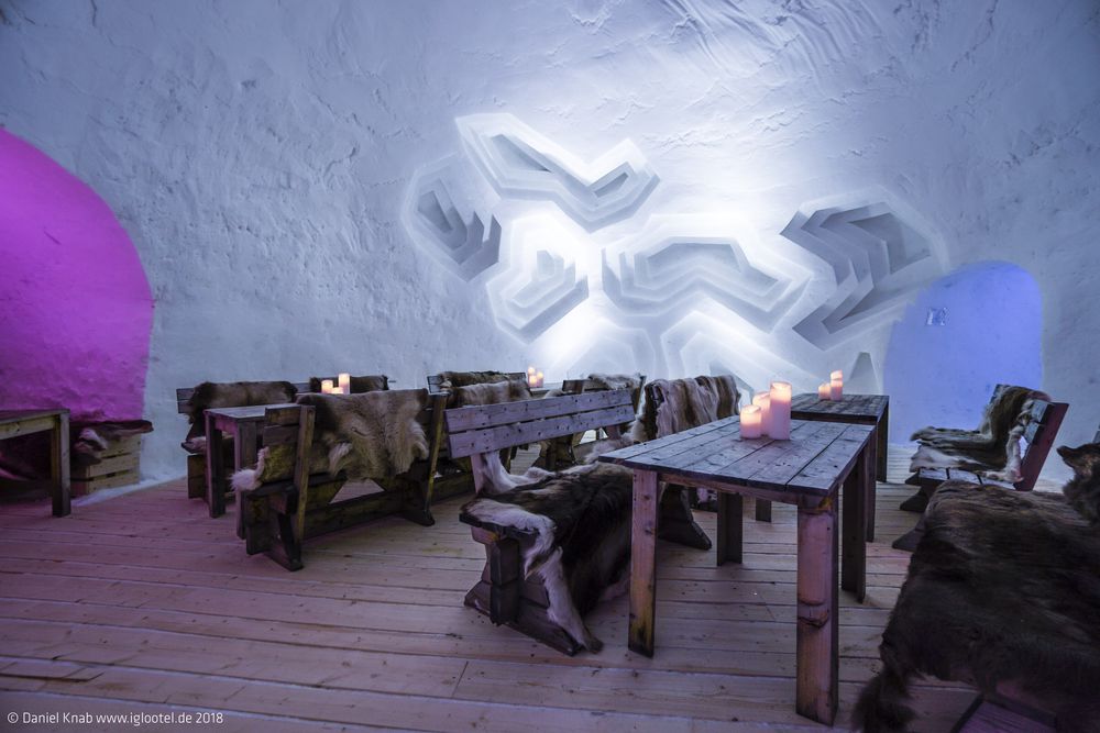 From November until January, thousands of snow and ice tons create the unique IGLOOTEL design.