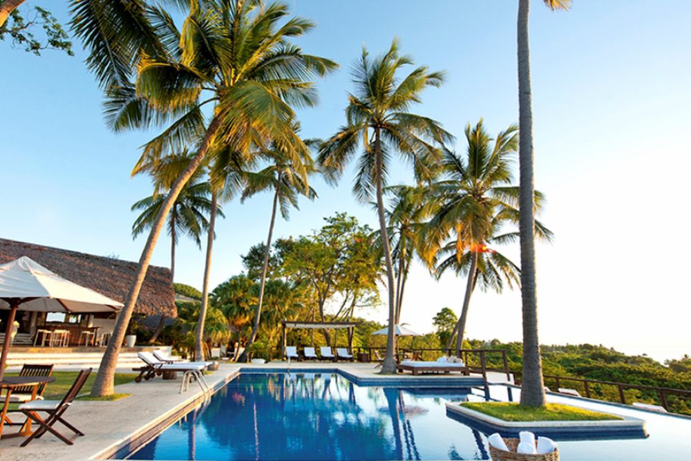 Situated on a hill and nestled in a tropical forest, the hotel offers a fantastic view of the mountains and the sea. Its atmosphere feels personal and inviting. Local, exotic materials such as stone, coral, palm trees, wood, and thatched roofs create a natural ambience in harmony with nature. Friendly staff and personalized service contribute to an all-round feeling of well-being and make your stay here unforgettable.
